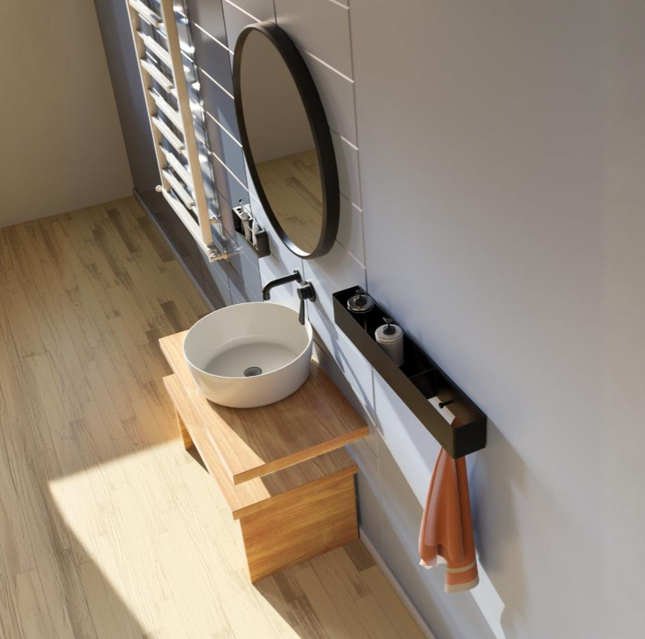Imagine a bathroom where every essential has its place, effortlessly within reach, and the decor exudes modern sophistication. That's the impact of 'Trace' in your home. With its sleek, horizontal design, 'Trace' optimizes your bathroom layout by maximizing wall space